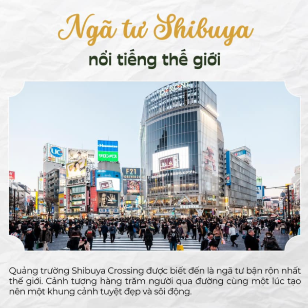 Shibuya, một trong những khu phố nổi tiếng nhất của Tokyo, Nhật Bản, là một điểm đến hấp dẫn cho du khách từ khắp nơi trên thế giới. Với sự kết hợp tuyệt vời giữa văn hóa truyền thống và hiện đại, Shibuya mang đến một trải nghiệm độc đáo và đầy sức sống. Dưới đây là 5 chi tiết quý khách không thể bỏ lỡ khi ghé thăm khu phố Shibuya: 1. Ngã tư Shibuya nổi tiếng thế giới 2. Thủ đô thời trang của Tokyo 3. Truyền thuyết về Hachiko 4. Đền Meiji 5. Cuộc sống về đêm sôi động Với những lý do trên, không có gì ngạc nhiên khi Shibuya trở thành một trong những điểm đến hấp dẫn nhất ở Tokyo. Vậy nên, nếu quý khách có kế hoạch du lịch đến Nhật Bản, hãy đảm bảo rằng Shibuya sẽ là một trong những điểm dừng chân trong hành trình khám phá đất nước mặt trời mọc của bạn nhé.